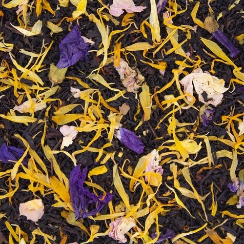 Thé noir Assam (Inde du Sud), arôme naturel, fleurs de souci, pétales de rose, mauve.