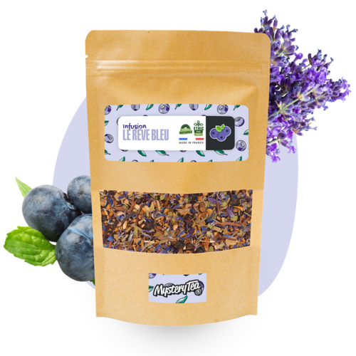 Vous avez envie d’une pause fraîche et fleurie, qui vous fasse rêver et sourire. Vous prenez votre tasse bleue, remplie d’un breuvage violet et odorant.